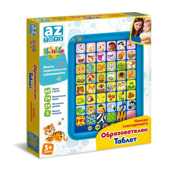 Thinkle Stars образователен таблет ''Намери съвпаденията'' помага на малките откриватели да развиват наблюдателност, памет и логическо мислене чрез весели задачи с животни.Детето трябва да открие и свърже правилните двойки – животно със сянката му, майка с малко, животно със звука му или две еднакви картинки. Чрез играта малчуганите упражняват концентрацията си и тренират фината моторика, докато се забавляват с любимите си животни.Цветният дизайн, лесните за натискане бутони и приятните звукови ефекти правят таблета чудесен избор за игра у дома или по време на пътуване.