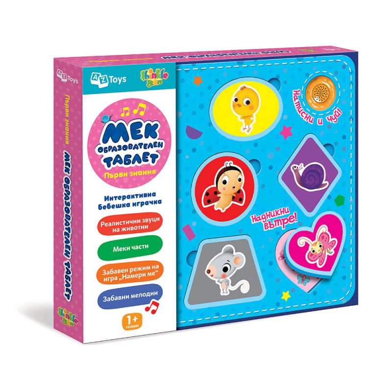 Thinkle Stars – Мек образователен таблет „Първи знания“ съчетава игра, звук и цветове, за да стимулира ранното развитие по нежен и забавен начин.С меки бутони, приятни текстури и весели мелодии, детето опознава цветове, животни, звуци и първи думички. Лекият дизайн е удобен за хващане от малки ръчички, а меката повърхност осигурява безопасност по време на игра.Thinkle Stars – Мек образователен таблет „Първи знания“ насърчава сетивното възприятие, фината моторика и любопитството още от най-ранна възраст.